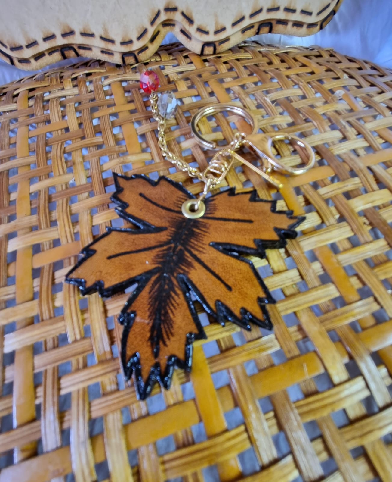 Descrição: Os Chaveiros PEQUENA FOLHA, são confeccionados Manualmente, de Couro Legítimo, com variação de Tamanhos, Formatos, Cores, Espessuras, Acessórios e Pedrarias.