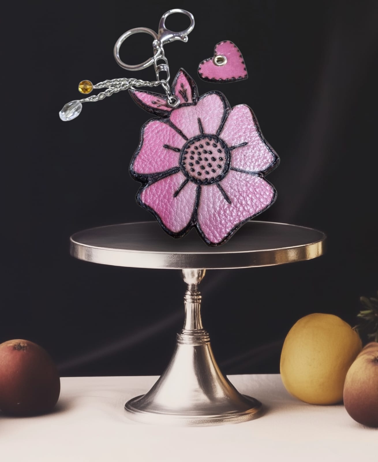 Descrição: Os Chaveiros ALAMANDA, são confeccionados Manualmente, com Couro Legítimo, no tamanho Padrão de 7,5 x 11,5cm; com variação de Cores, Espessuras, Acessórios e Pedrarias.